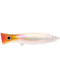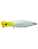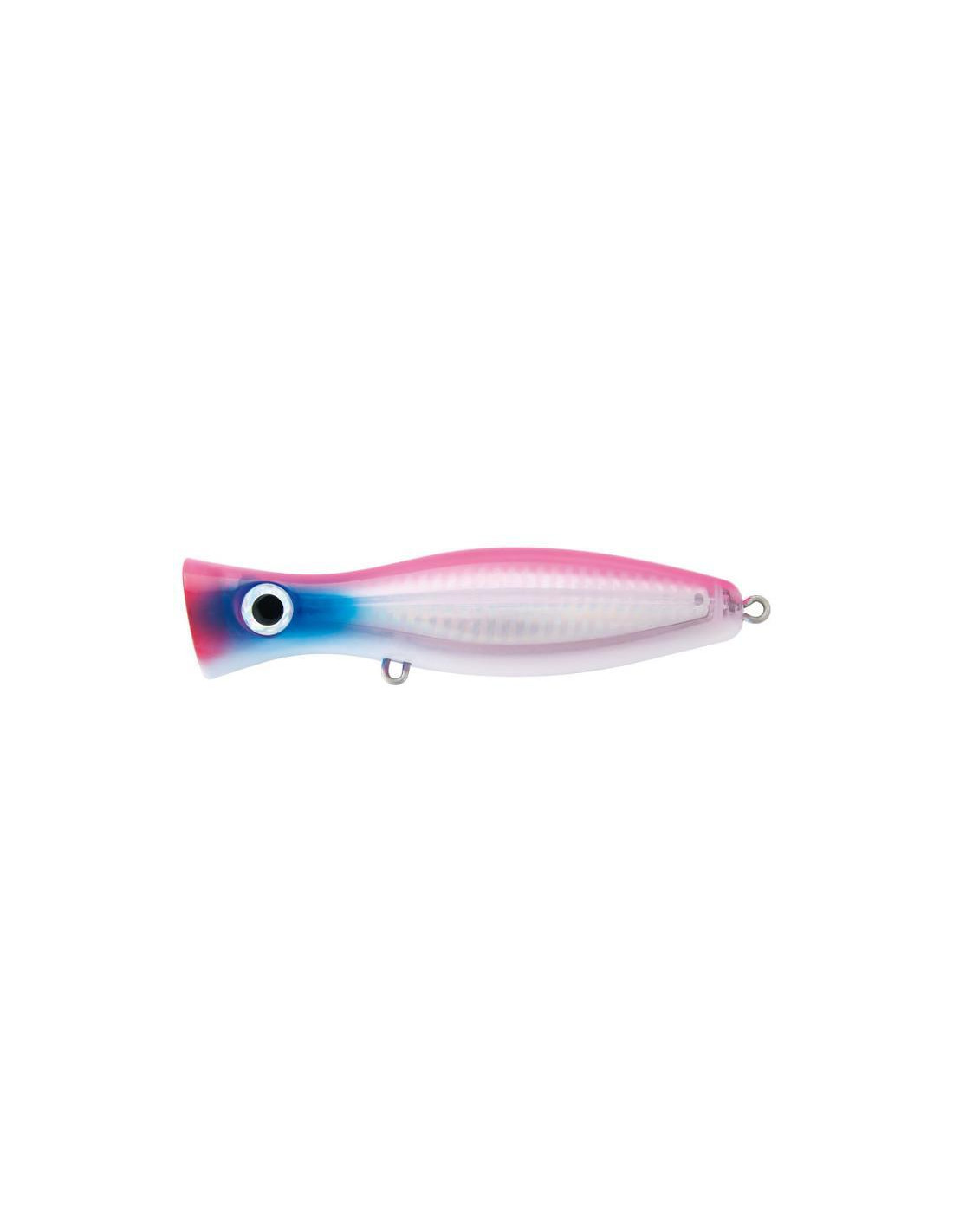 Designed for surface fi shing, typically in the summer time, since ever the Popper is a pillar of sea spinning, with its typical rhythmic sound, dictated by the rod. In this model of 12 centimetres it stands out the oval shape of the front, which pushes away a substantial amount of water, creating a relevant puff . Despite its compact size, the Raiden Pop is equipped for the most strenuous battles, having the steel wire that runs through the body to connect the front ring to the two holding hooks: an important detail if you think that this lure will be hunt by Bonitos, Bluefi sh and assorted Thunnidae. The high weight to volume ratio really improves the ballistic properties and stability of swimming when sea is rough. The wide range of available colours includes a Glowing, which absorbs light and spreads it in water for a long time: try it in semi-darkness conditions and see what happens!